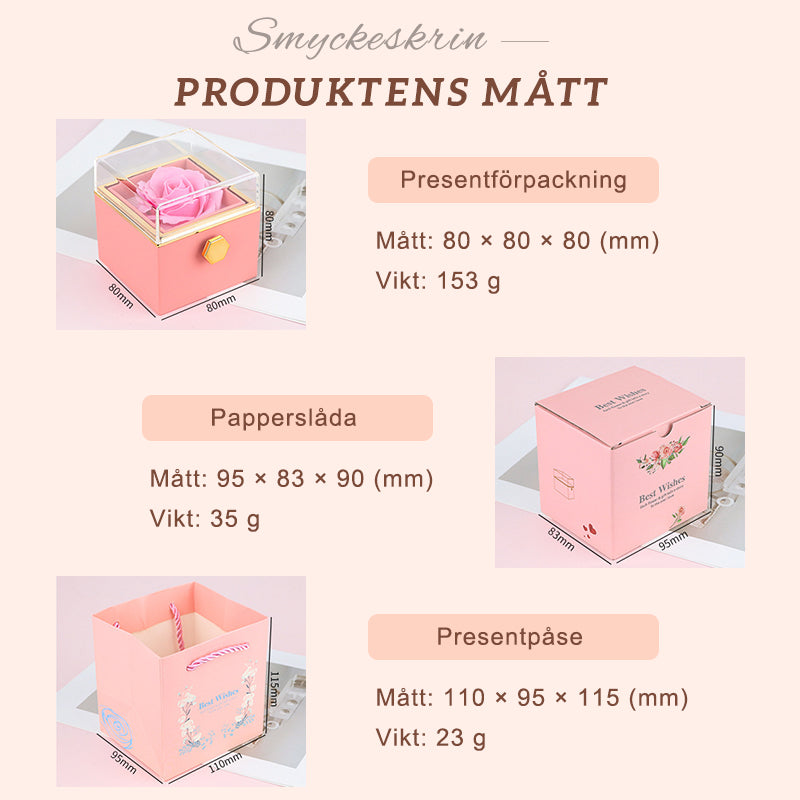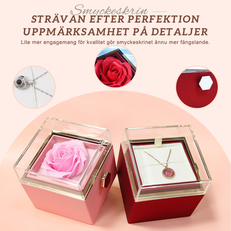 Valentinsdagen är en dag att uttrycka kärlek – och denna roslåda med smycke gör det på mest romantiska sättet! Med en 360°-roterande design, evigt levande rosor och plats för din älskades favoritsmycken, är den inte bara en gåva – utan en minne som kommer att leva i minnet länge.