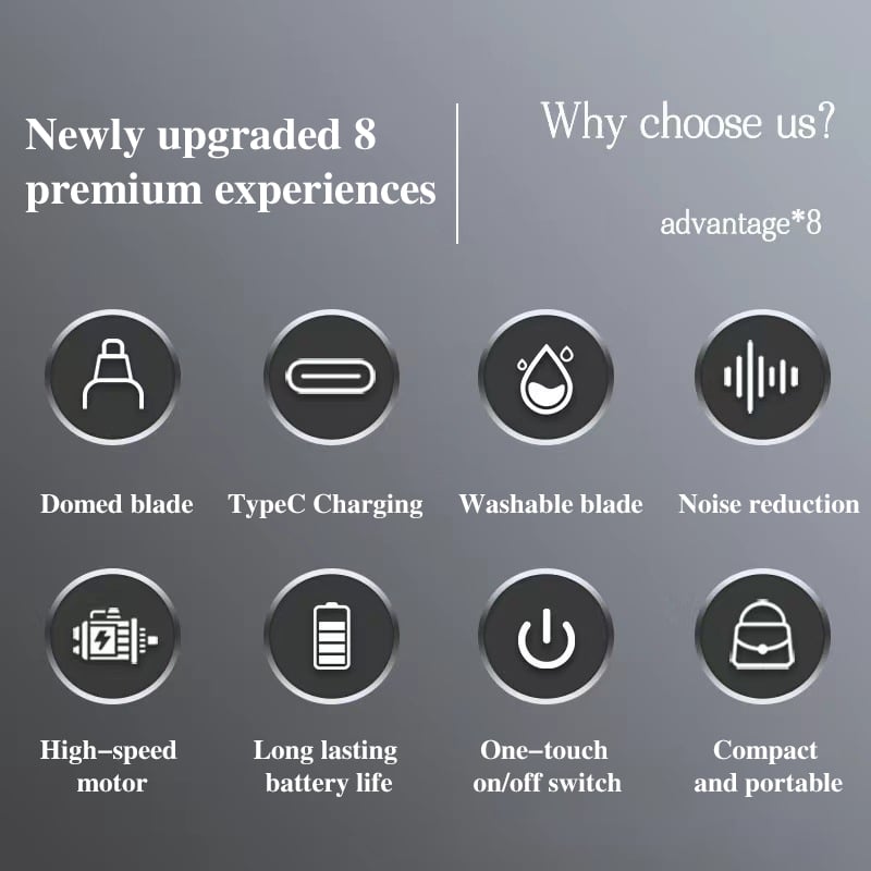 HJÄLPSLÖS BATTERIKAPACITET - Den uppladdningsbara näshårstrimmern är utrustad med ett litiumbatteri med stor kapacitet. En full laddning kan driva näshårstrimmerklipparen i upp till 1 år (baserat på 1 minuts användning per vecka). Långvarig batteritid gör att du slipper strömavbrott. Bekväm typ C-laddning, anpassningsbar till olika laddare.