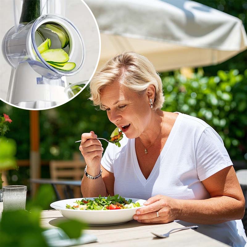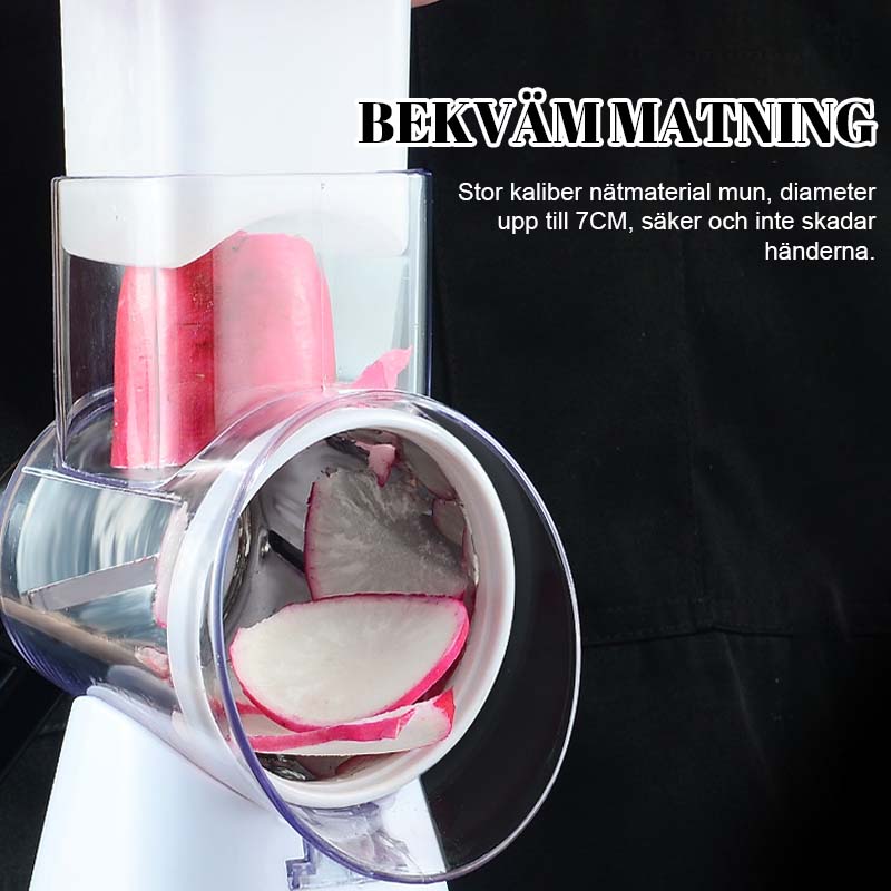 Att skära grönsaker, potatisar eller frukter tar ofta tid – men med denna multi funktionella manuell grönsaksskärare blir matlagningen en lek! Den 2:a generationens design kombinerar flera skärfunktioner med en enkel manuell crank, så du kan skära, skava och skapa skivor snabbt, säkert och utan trötthet i händerna.